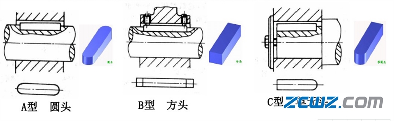 b、平鍵類型:A型平鍵、B型平鍵、C型平鍵。