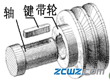 上圖所示的是一個皮帶輪與軸上鍵的連接。鍵連接的目的是實現(xiàn)軸上零件的周向固定并傳遞轉(zhuǎn)矩。