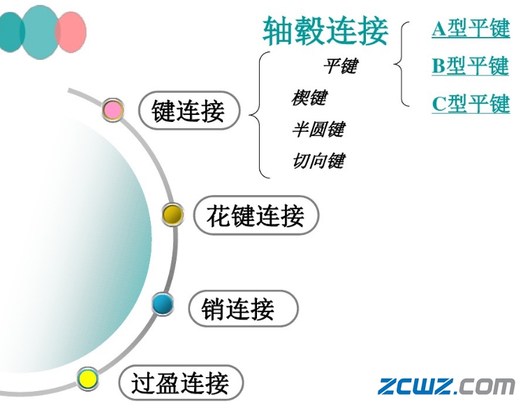軸與軸上零件(如齒輪、帶輪、鏈輪等)的鏈接稱為軸轂連接,其功能主要實現(xiàn)軸上零件的周向固定并傳遞轉(zhuǎn)矩。軸轂連接的方式很多,最常見、應(yīng)用最廣泛的有鍵連接、花鍵連接、銷鏈接、過盈連接等。