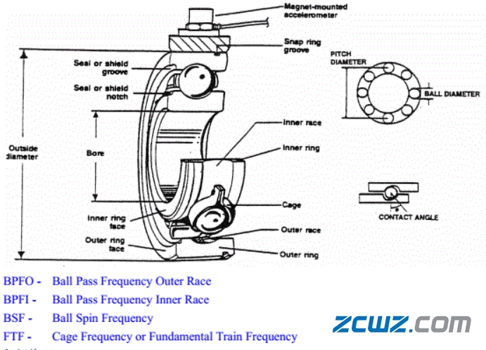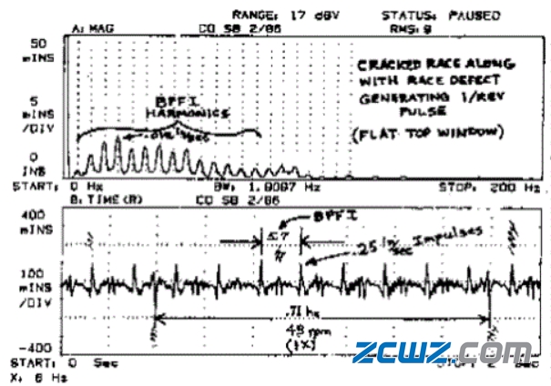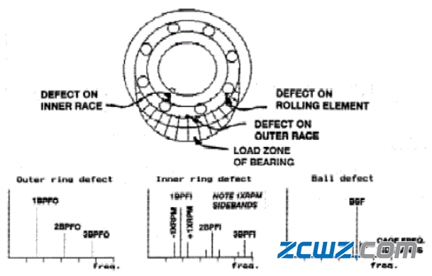 8、當(dāng)滾動(dòng)體本身出現(xiàn)故障時(shí),往往會(huì)產(chǎn)生不僅滾動(dòng)體故障頻率(BSF),還有保持架故障頻率(FTF);