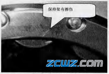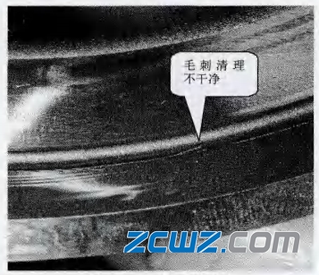 新軸承常見故障有以下幾種現(xiàn)象:鉚釘銹蝕松動(dòng)、滾柱有擦傷、保持架有擦傷和毛刺清理不干凈,如下圖6-9所示
