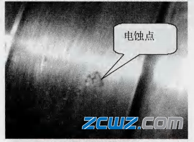 軸承組裝后在使用過程中因外部原因,有不明電流流過軸承,會(huì)在軸承滾道面及滾柱上產(chǎn)生電流燒灼點(diǎn),影響軸承的使用壽命。此類電流腐蝕一般不外乎兩種,一種時(shí)機(jī)車落成后,在電焊施工是回地線搭接位置不正確導(dǎo)致軸承通電引起電蝕;一種是電機(jī)本身在運(yùn)行是產(chǎn)生漏電流或電機(jī)發(fā)生放炮后使得軸承有電流流過產(chǎn)生電蝕。