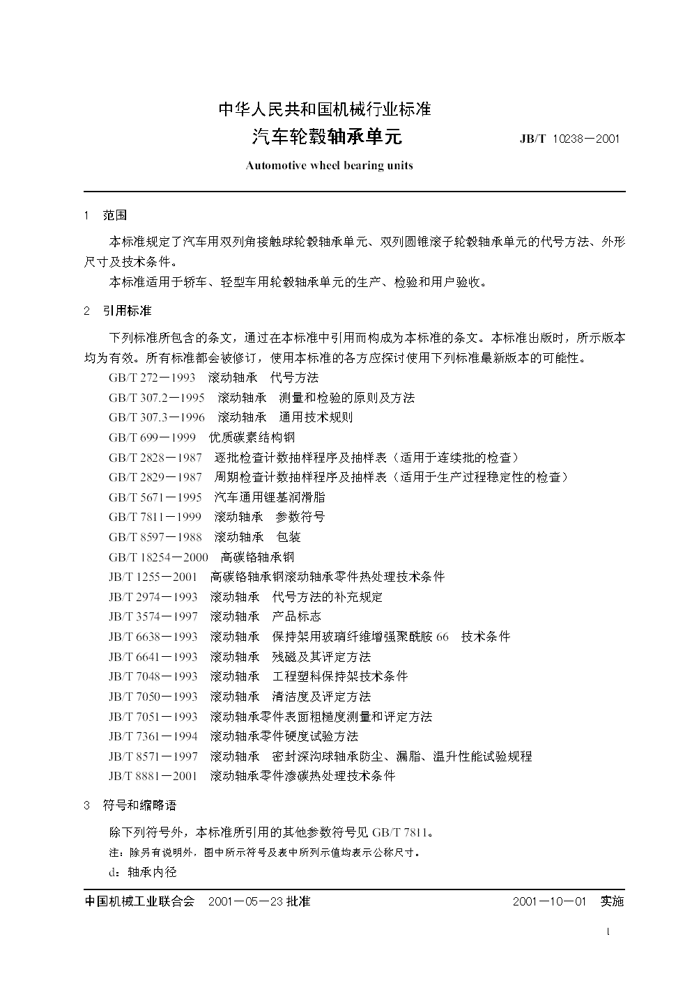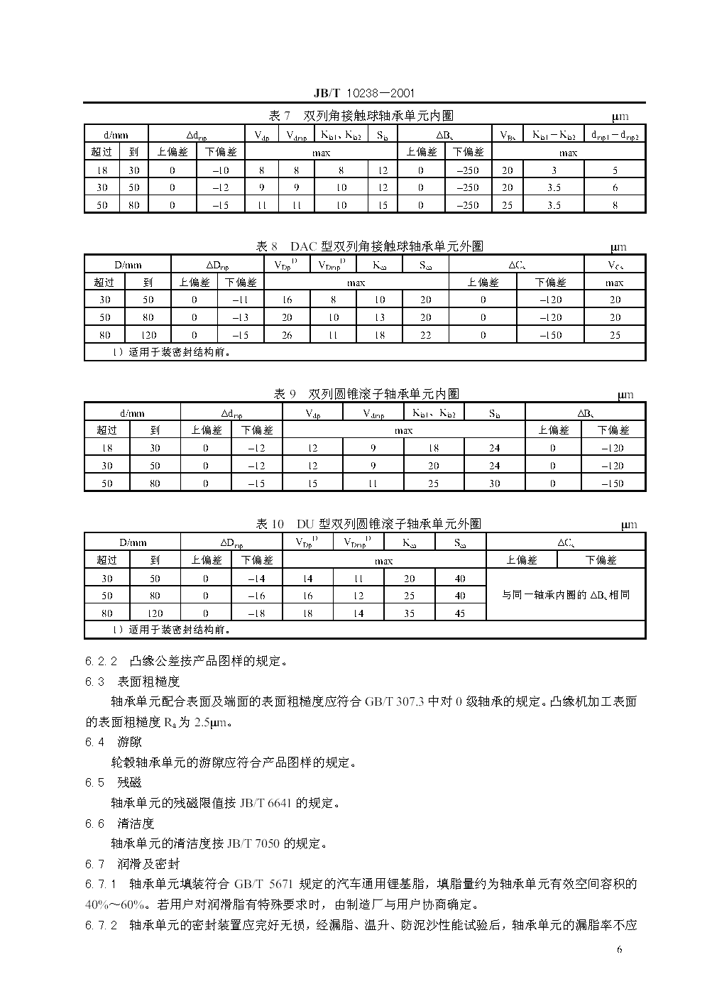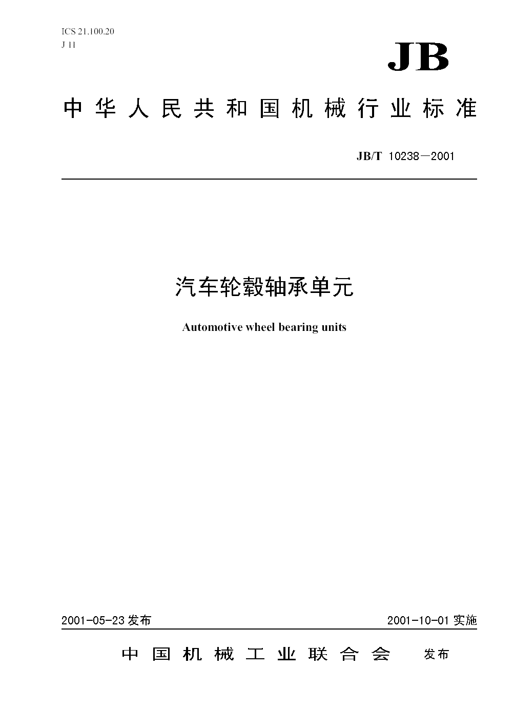 JB/T 10238-2001 汽車輪轂軸承單元