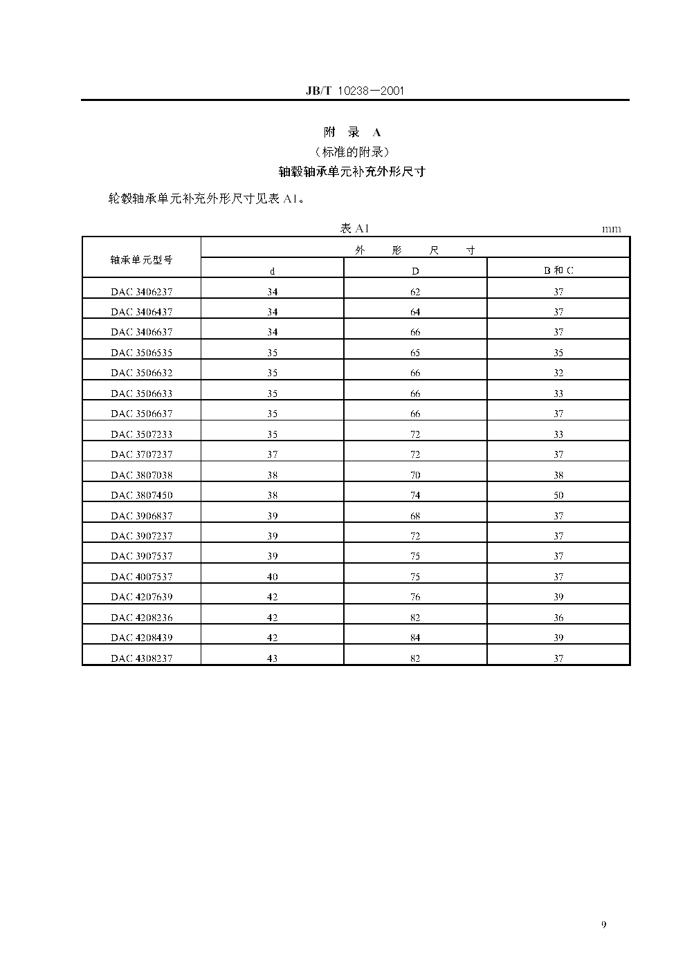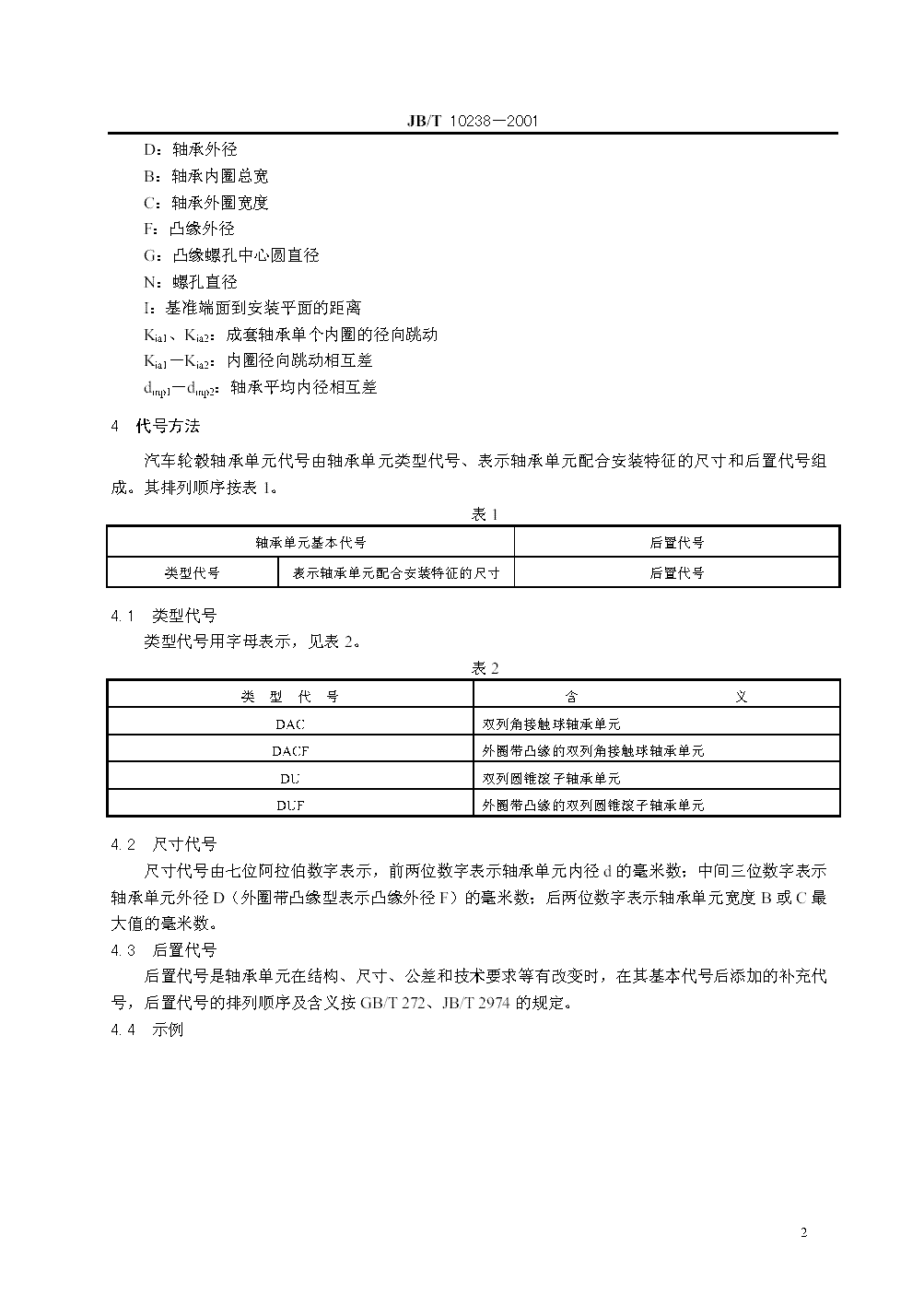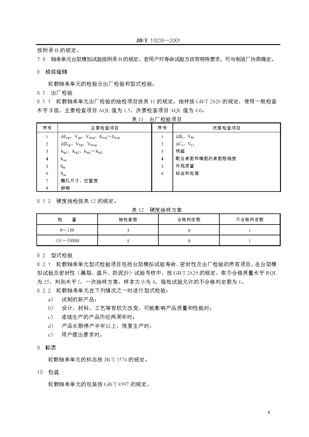 JB/T 10238-2001 汽車輪轂軸承單元