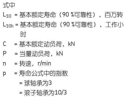 要明白,軸承的基本額定壽命就是考核軸承的耐操程度,一般給出90%可靠性的理論計算壽命。僅有這個公式可能還不夠,比如SKF或NSK可能會給出各種修正系數(shù)。