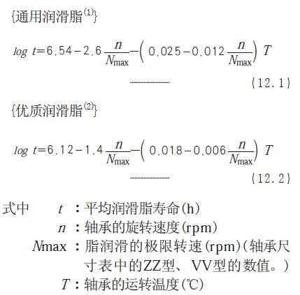 壽命二:平均潤滑脂壽命L50(考核潤滑脂多久會干涸掉),每個軸承廠家的計算公式還都不一樣,下面以NSK樣本書給出的計算公式說明: