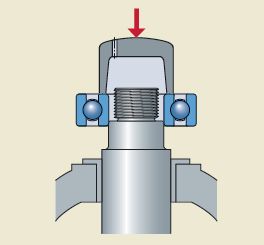 正常安裝軸承時,如果內(nèi)圈是配合面,那么就會壓內(nèi)圈,外圈不受力,也就不會產(chǎn)生傷痕,如下圖。