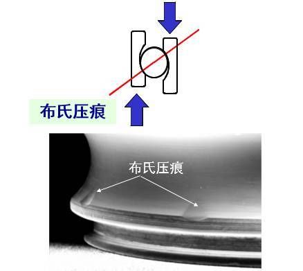 但,如果不是這樣,而是讓內(nèi)外圈相對受力了呢?那就會如下面這樣的圖示,產(chǎn)生了布氏壓痕。