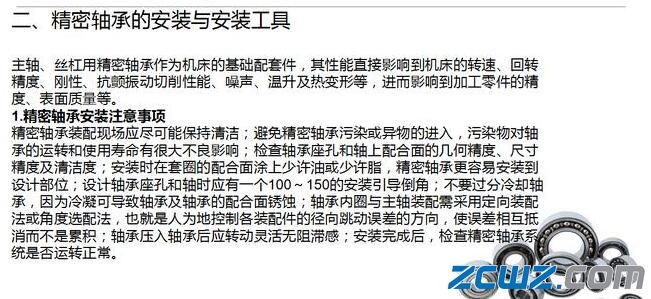 精密軸承的裝配質(zhì)量直接影響其工作狀態(tài)和使用壽命,有不少數(shù)控加工中心的故障就是由于軸承的裝配不當(dāng)造成的,所以對(duì)精密軸承的裝配技術(shù)應(yīng)當(dāng)給予足夠的重視。