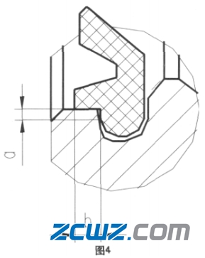 ①軸承密封圈內(nèi)唇部過盈量太小造成的喇叭口,則須加大密封圈內(nèi)唇部過盈量,單邊過盈量F按以下公式計算(見圖1);